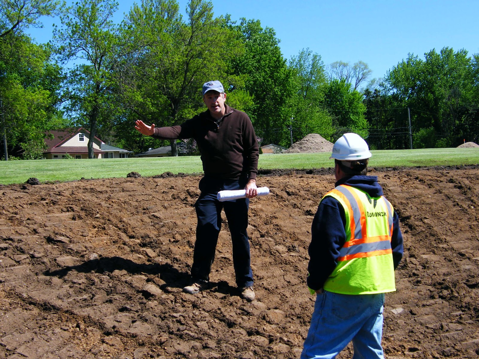 Golf Course Architect Richard Mandell was on site for two days at the end of May. He was able to spend quality time with the two lead shapers from Duininck, Rich and Scott. As I stated in a previous post, this melding of the minds is critical in the transfer of the architect's vision to golf course features composed of soil and grass.